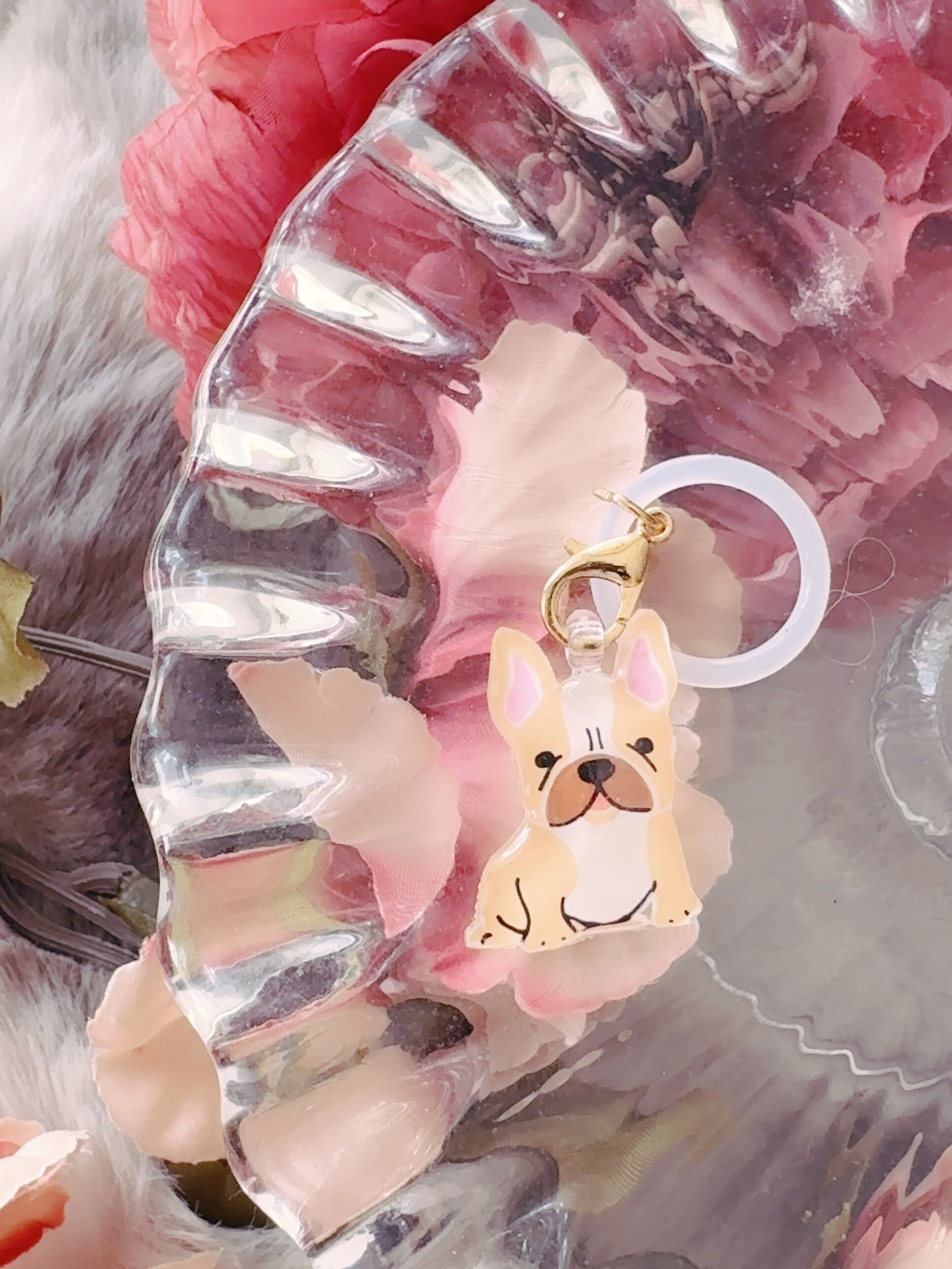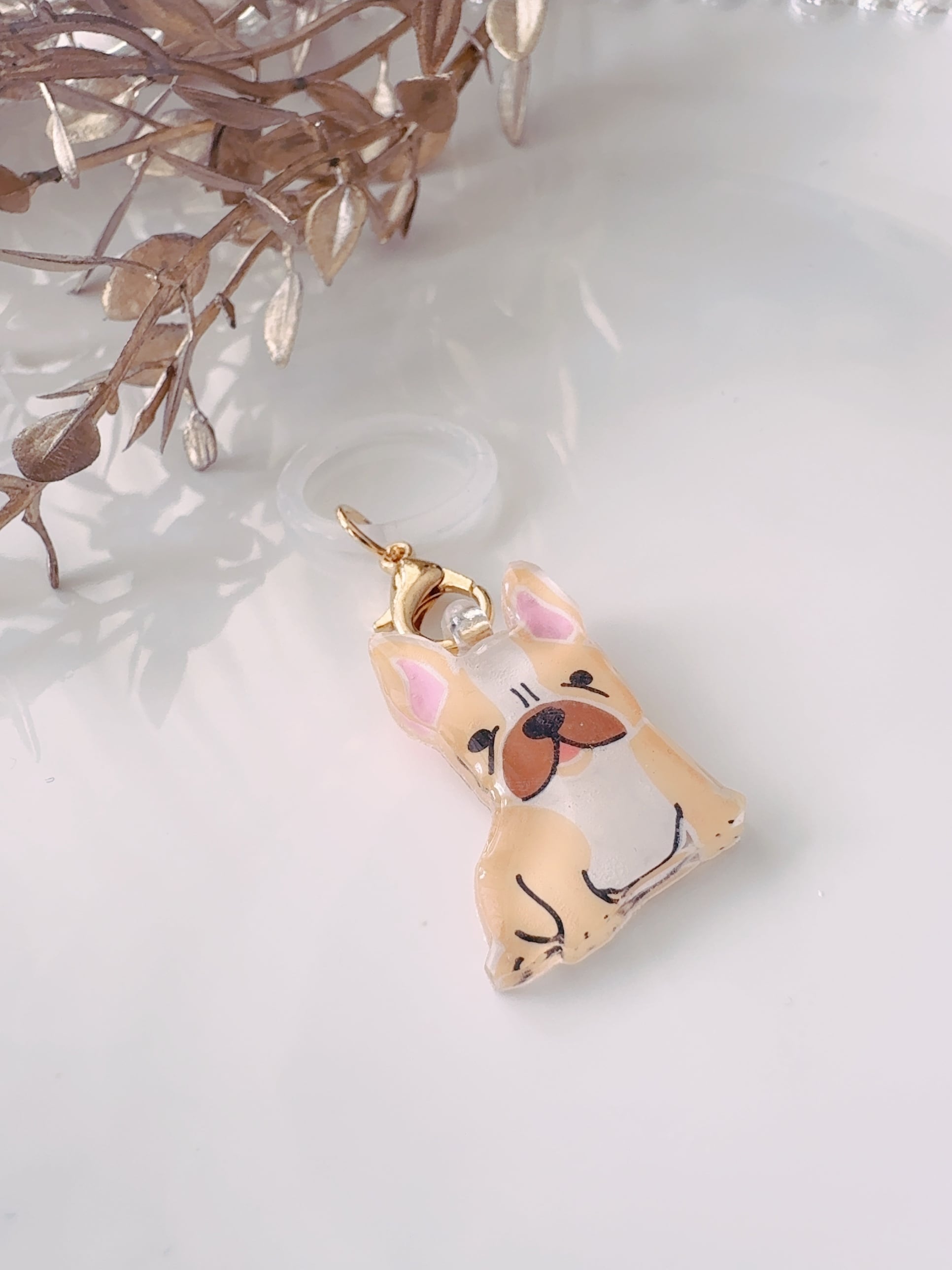 おしゃれなベージュのフレンチブルドッグが描かれたアンブレラマーカー✿そのユーモラスな表情が、雨の日の気分を楽しく演出してくれます!