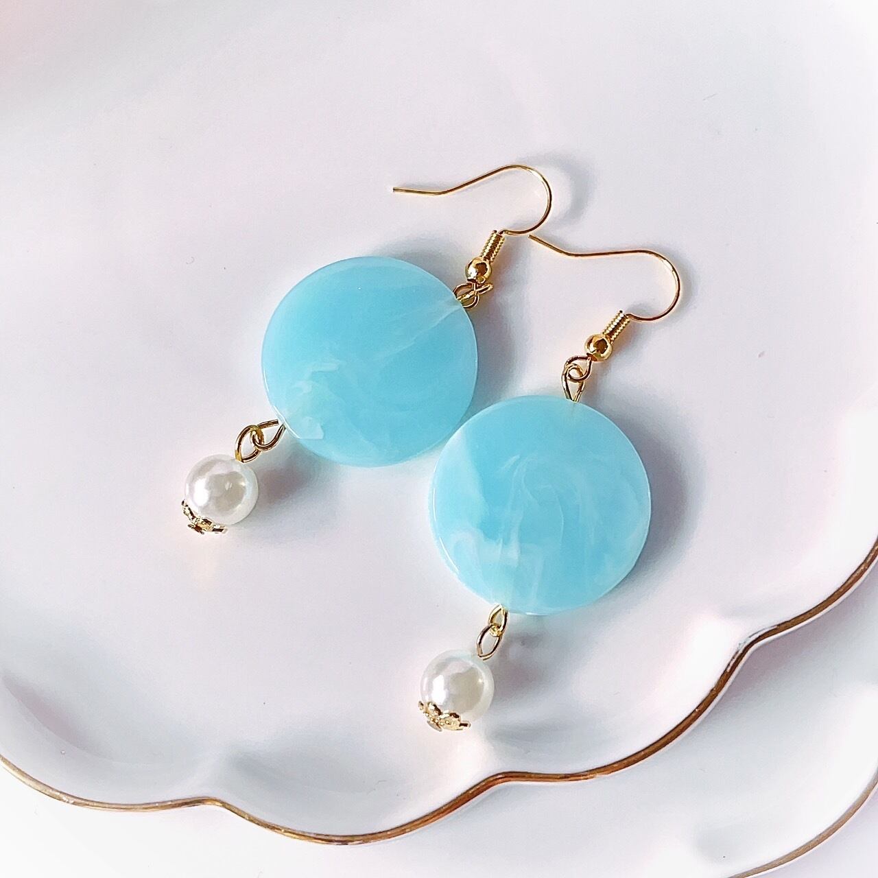 6091 No.11 爽やかブルー 大ぶりピアス【彩り工房 にじか】