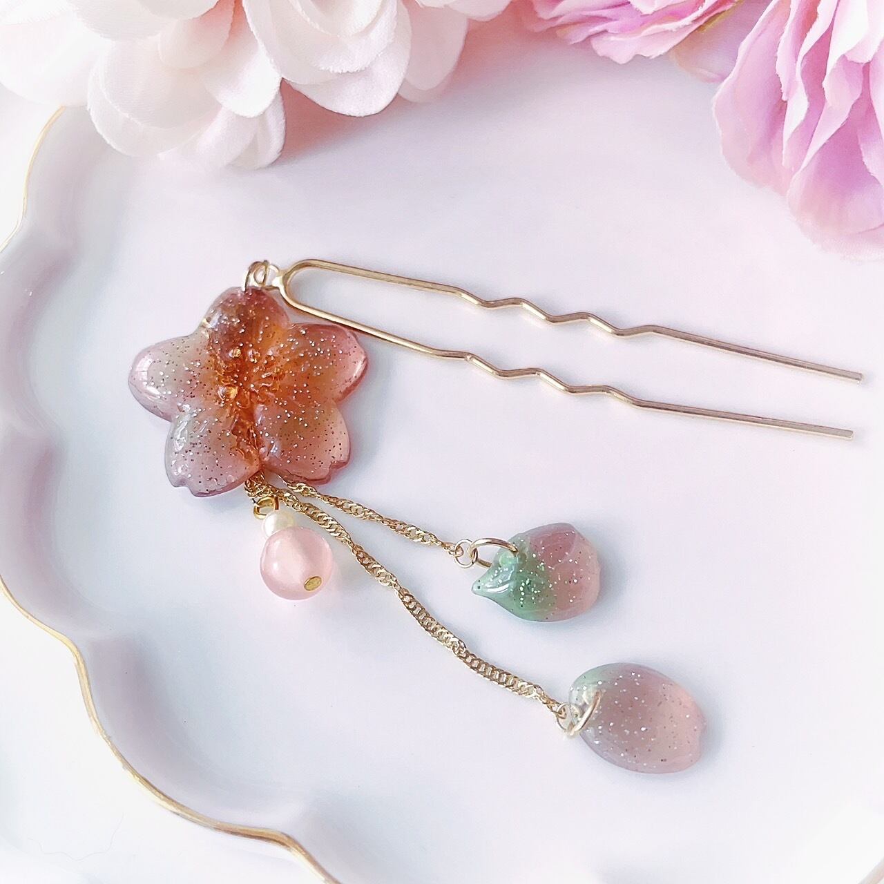 ハンドメイド品は既製品のような強度はございません。破損の原因となりますので御使用の際には無理な力を加えませんようお気を付け下さい。