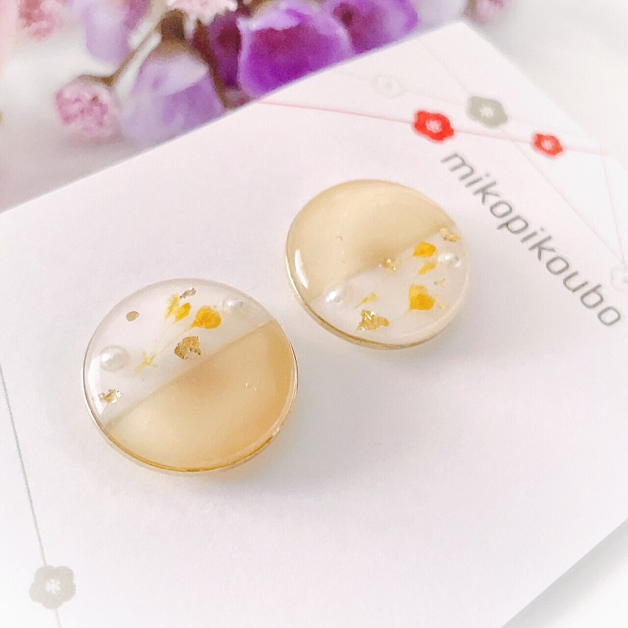 カスミソウを閉じ込めたシンプルなピアスとなってます。