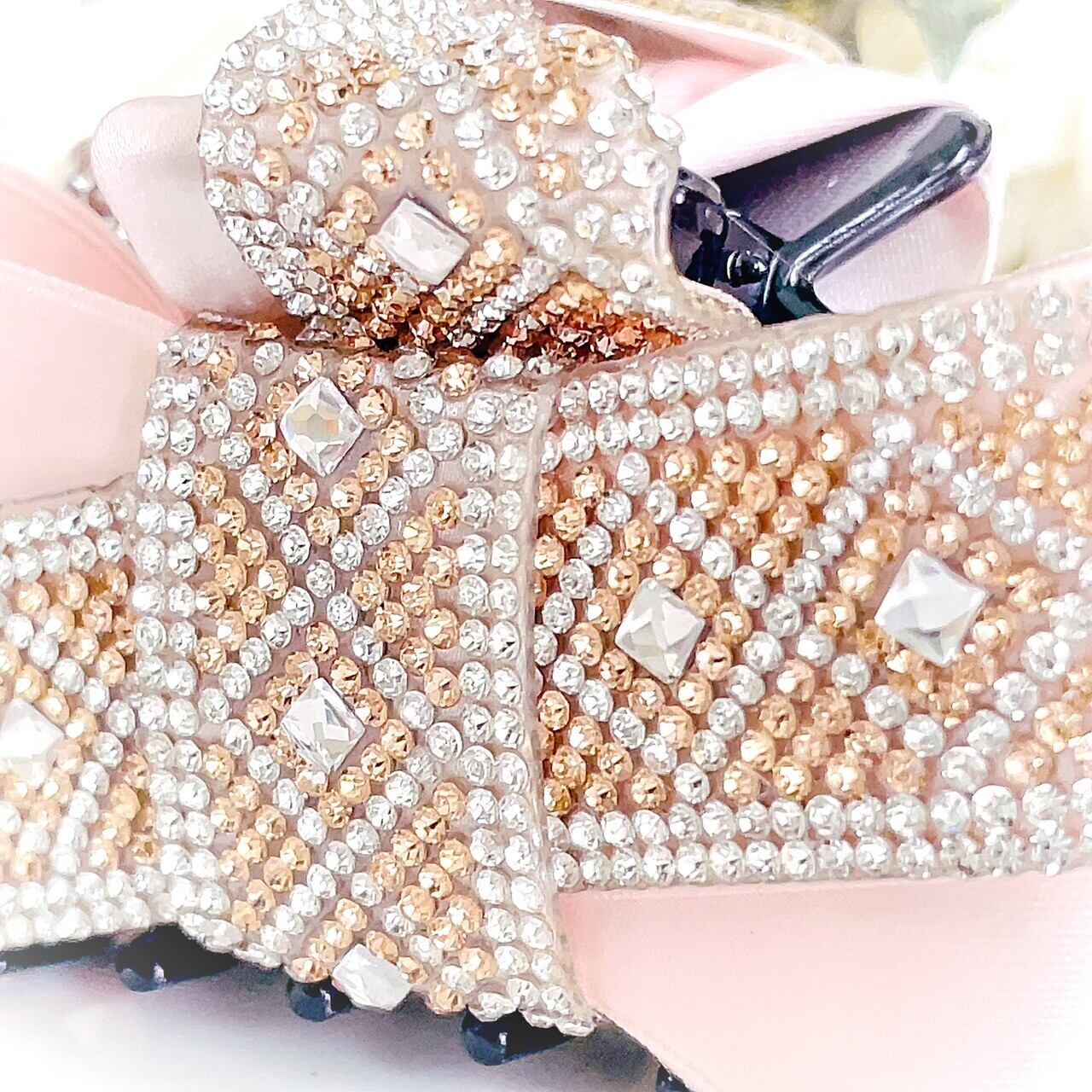 ・ピンクサテンとキラキラのPave(パヴェ)を組み合わせたとても華やかなリボンです。