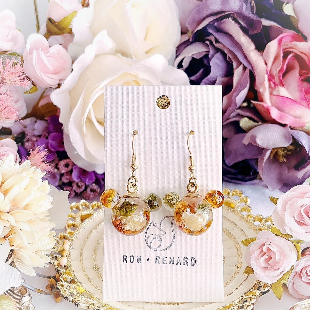 8292 No.22 くまのドライフラワーピアス【ROM・RENARD】