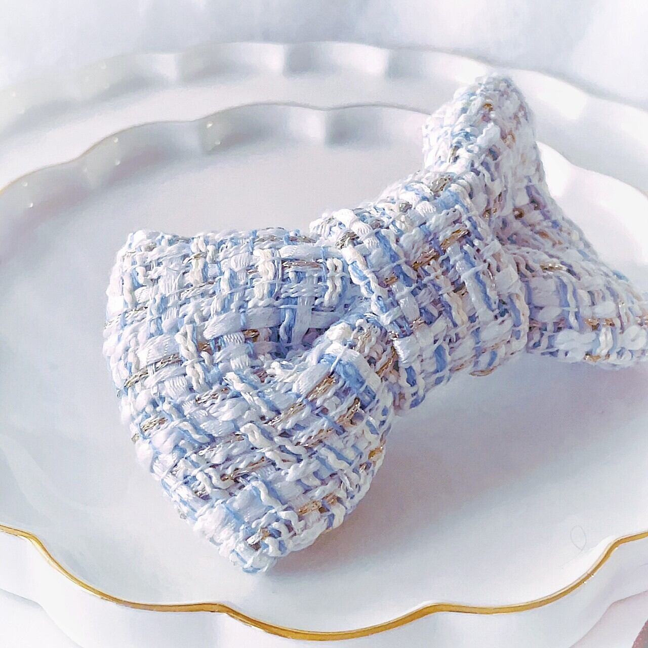*白・水色・金色のツイードリボンです。