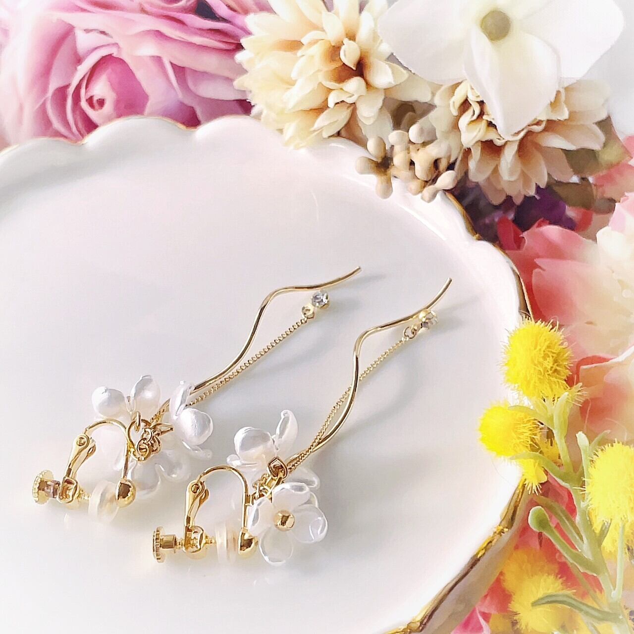 8850 No.14 小花×ビジュー揺れるイヤリング【YONEBLOOM】