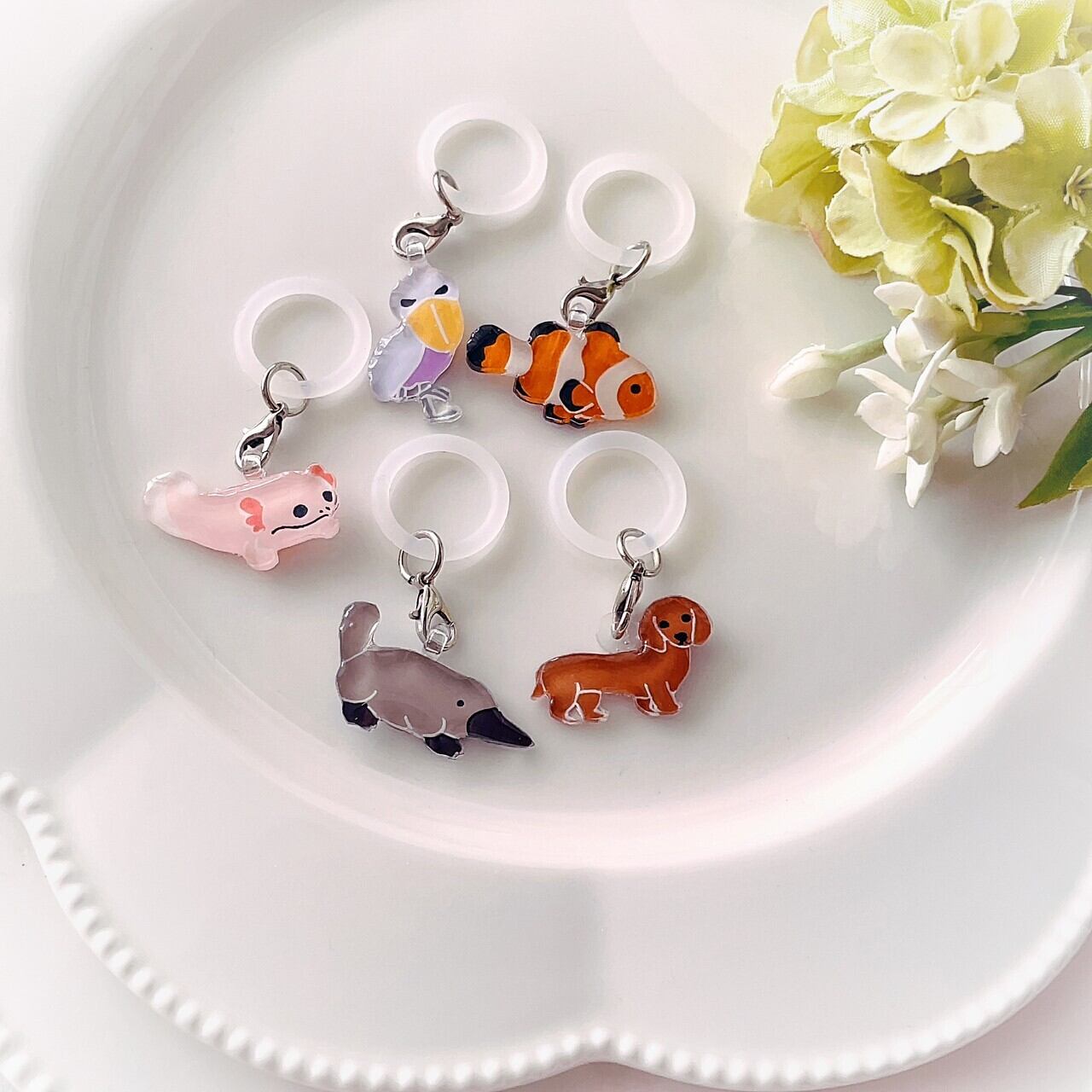 ハンドメイド品は既製品のような強度はございません。破損の原因となりますので御使用の際には無理な力を加えませんようお気を付け下さい。